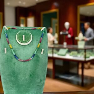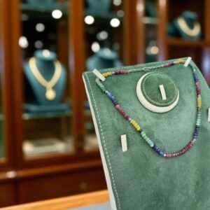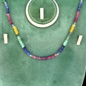 This One-Layer Natural Multi-Sapphire Necklace features stunning natural gemstones in various colors, including multicolor and blue. The elegant design makes it a perfect accessory for special occasions like engagements, weddings, anniversaries, or birthdays. With excellent cut grades and a round shape, these sapphires are beautifully set in a standard necklace length, adding a touch of beauty and sophistication to any outfit. Made with natural gemstones and a secure metal closure, this necklace is a luxurious and timeless piece of fine jewelry.